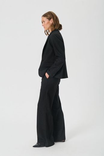 Das Model ist 178 cm groß und trägt Größe 36. Diese Hose mit feinen Nadelstreifen hat eine klassische Silhouette mit hoher Taille, Bügelfalten und geradem Bein. Das zeitlose Design passt sowohl ins Büro als auch zu festlichen Anlässen. Kombiniere sie mit Bluse, Blazer oder Weste für ein stimmiges Outfit.